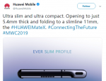 Ultra slim and ultra compact. Opening to just 5.4mm thick and folding to a slimline 11mm, the #HUAWEIMateX. #ConnectingTheFuture #MWC2019 pic.twitter.com/9MG3Kjsypi