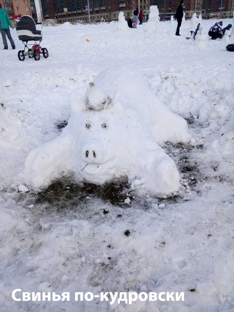 Первую позицию занял снеговик «Нам нужны дороги». Второе место отдали снеговику «Свинья, которую подложили жителям Кудрово», третье — «Снежный участковый».