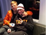 Возле здания суда два активиста устроили пикет с плакатами в поддержку Александра Кокорина. В зале суда присутствовали его жена и родители.