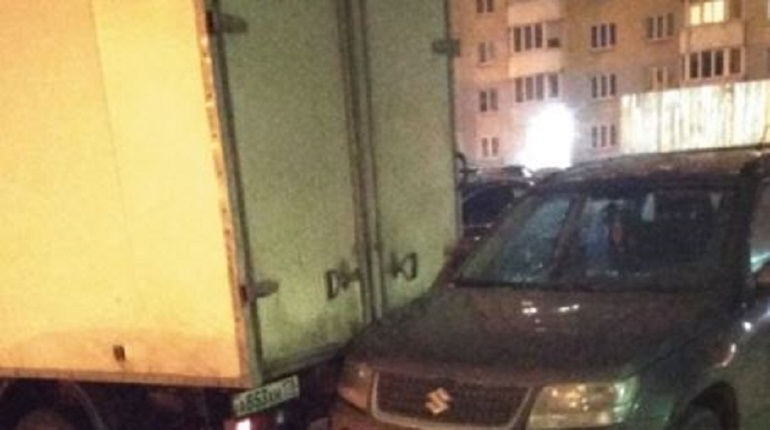 Сегодня ночью Индустриальном проспекте в Санкт-Петербурге водитель грузовика задел припаркованную во дворе иномарку.