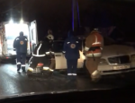 На место дорожного происшествия также прибыли и сотрудники МСЧ. Спасатели и медицинские сотрудники достают пострадавшего из легкового автомобиля человека.
