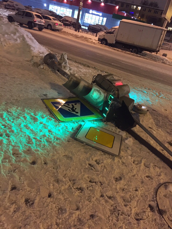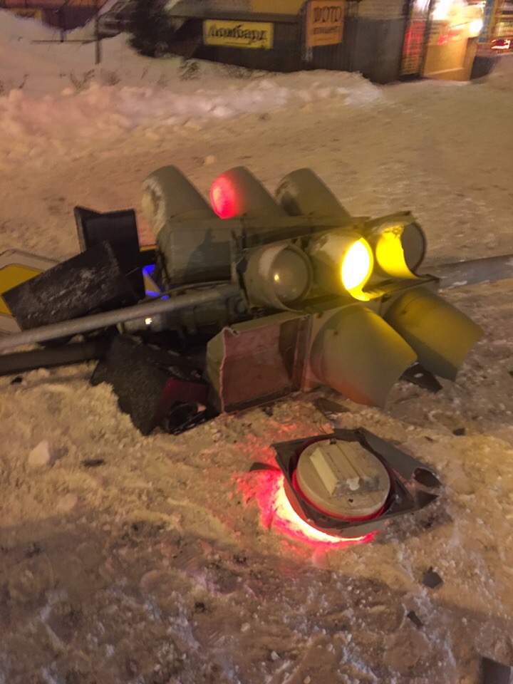 При каких обстоятельствах светофор оказался на снегу неизвестно.