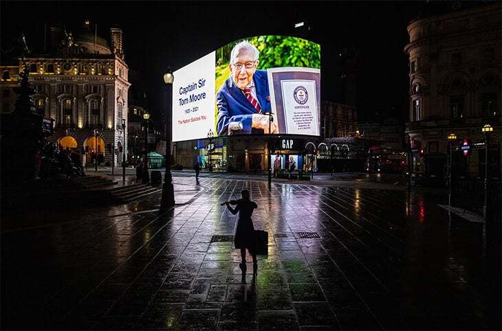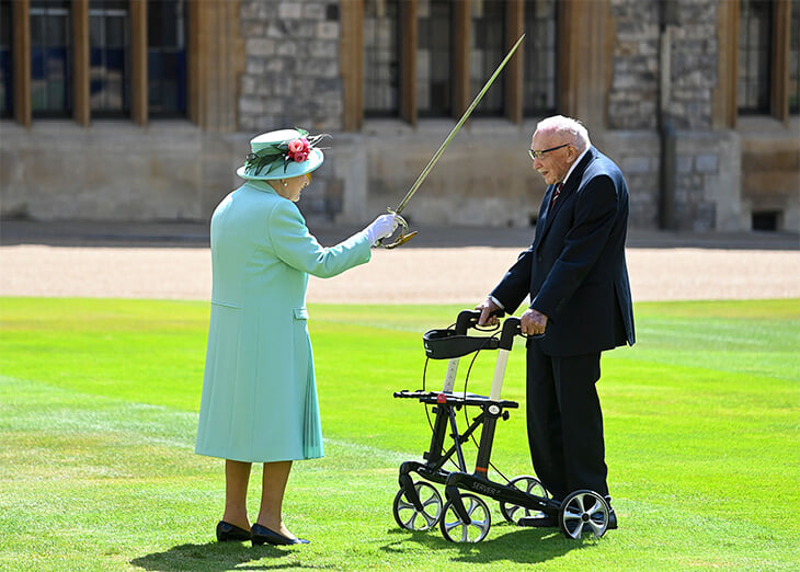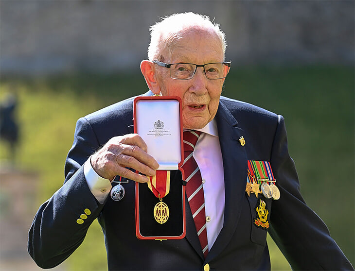 Вы точно помните Тома Мура. Простите, капитана Тома Мура. Этот великий дедушка перед 100-летним юбилеем устроил марафон: надеялся пройти сто 25-метровых кругов на заднем дворе дома, чтобы собрать средства для сотрудников Национальной службы здравоохранения (NHS), которые помогли ему в лечении рака и перелома бедра.