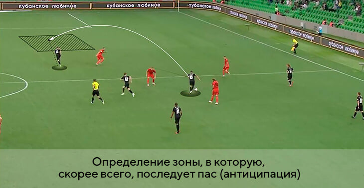 Предвосхищать – значит, предвидеть, и вратарь должен оценивать на что ориентирован соперник еще до его действия. Например, он определяет позицию более опасного атакующего игрока соперника, в направлении которого готовится вертикальная передача за линию обороны – то есть он готов действовать на опережении, выбив мяч или сохранить контроль над ним также вратарь может снимать момент подсказом партнерам.
