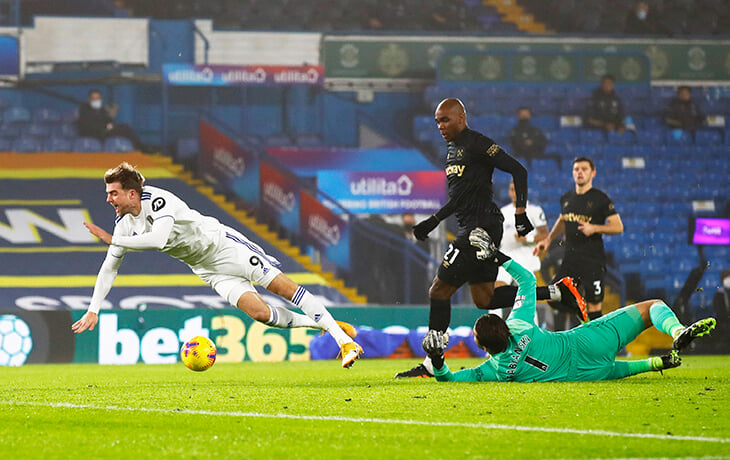 «Лидс» и «Вест Хэм» в пятницу открыли тур АПЛ. Уже на первых минутах хозяева заработали пенальти: Фабианьски зацепил Патрика Бэмфорда в штрафной.
